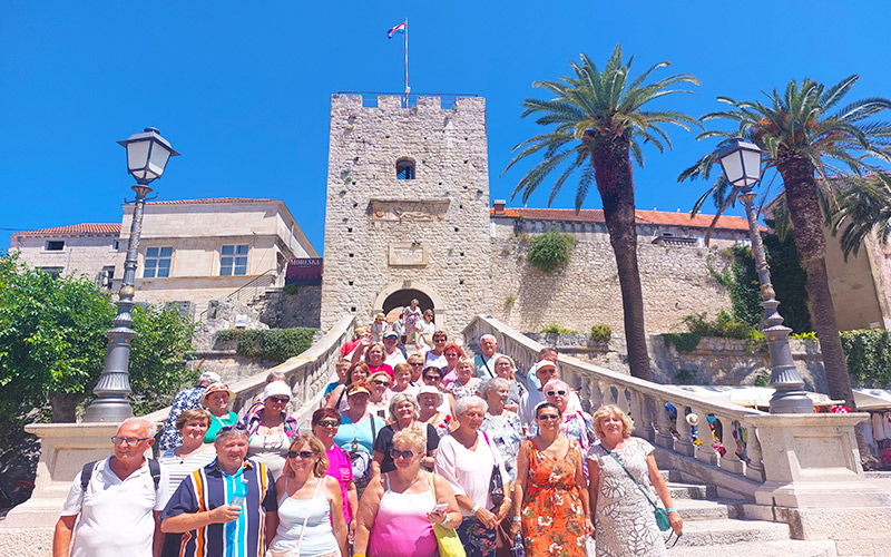 ● buszos kirándulást, hajózással és városnézéssel Korčula-szigetére és a városba