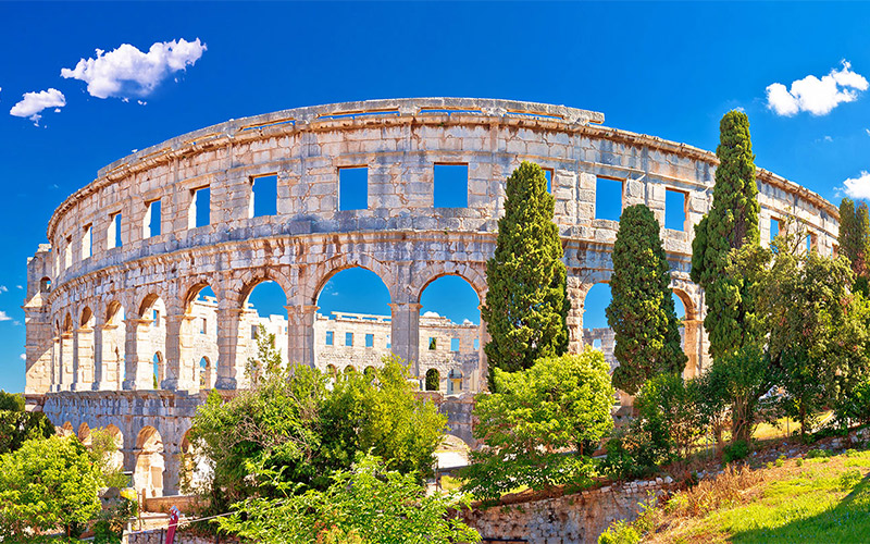 3. nap: A reggelit követően a Kvarner-öböl évszázadok óta legkedveltebb nyaralóhelyének számító Opatija felé vesszük az irányt, majd Pula városába utazunk, ahol látogatásunk során megtekintjük a tengerparton fekvő, Vespasianus császár uralma alatt építtetett, négyszintes, 20 000 főt befogadó, napjainkban is jó állapotban fennmaradt római amfiteátrumot, amely ma koncertek, fesztiválok és kultúrprogramoknak ad helyet, egykor pedig számos gladiátorviadal és játék helyszíne volt.
